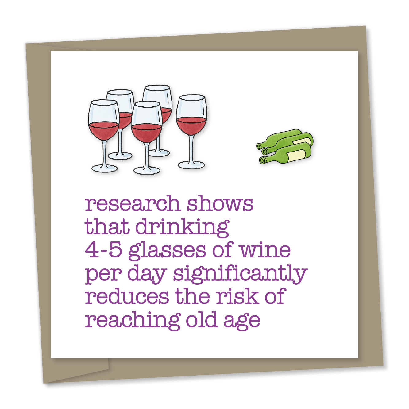 4-5 glasses of wine every day reduces the risk of reaching old age | Funny greetings card