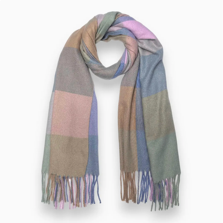 Classic Colourful Woolmix Check Scarf with Tassels | Pastels