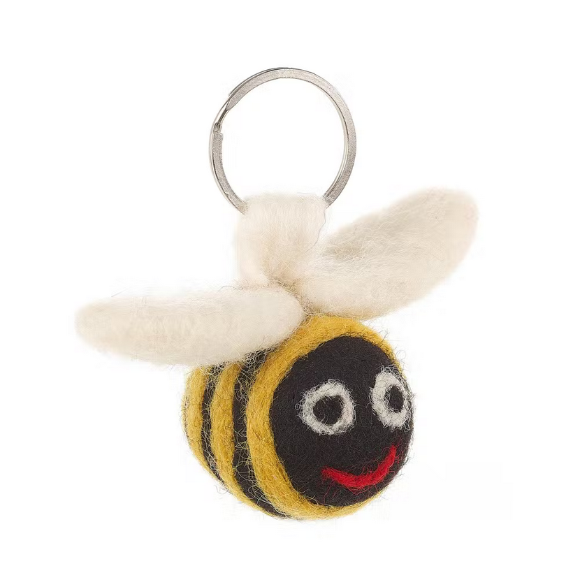 This delightful busy bee will buzz around your keys all day! Beautifully handcrafted using traditional needle felting techniques from sustainable and eco-friendly materials.